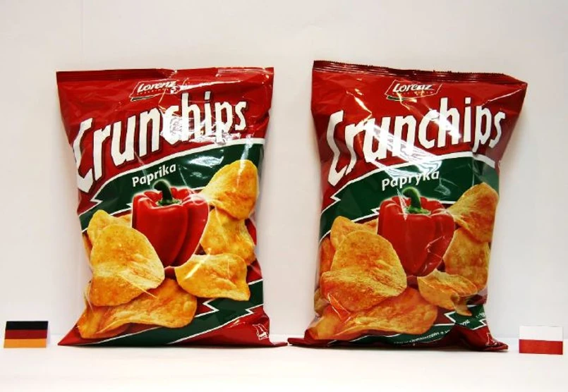 Chipsy paprykowe Crunchips – mimo że opakowanie było identyczne, to w polskich sklepach jest o 25 g mniej chipsów. Polskie – smażone na oleju palmowym, zawierały glutaminian monosodowy, miały wyższą zawartość tłuszczu. Niemieckie – na słonecznikowym, bez wzmacniacza smaku. Producent dodał do nich proszek pomidorowy i serowy – czego zabrakło w polskich.
