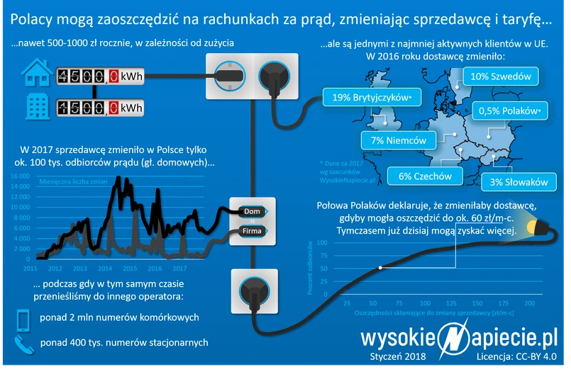 Ministerstwo Energii przewiduje też, że wprowadzenie nowych liczników przyśpieszy proces zmiany sprzedawcy prądu i zachęci Polaków do większej aktywności na tym rynku. W ubiegłym roku na przejście do nowego sprzedawcy energii zdecydowało się tylko 100 tys. polskich rodzin. Tymczasem wszystkich odbiorców domowych mamy w kraju ponad 17,5 mln.