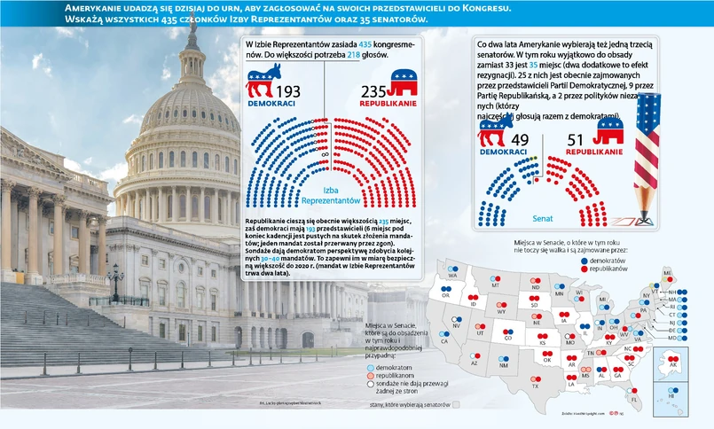Dla GOP, jak określa się Partię Republikańską, te wybory są nieco łatwiejsze. Zamiast iść szeroką ławą republikanie skupili się na ochronie kluczowych okręgów, aby zmniejszyć straty na rzecz demokratów w Izbie Reprezentantów oraz utrzymać większość w Senacie. Niezwykle aktywny był też prezydent Donald Trump, który przez ostatnie tygodnie niestrudzenie wspierał republikańskich kandydatów na wyborczym szlaku.