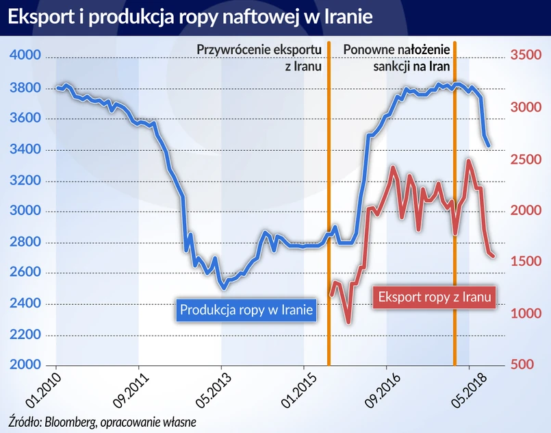 Na rynku ropy naftowej od 5 listopada br. obowiązują amerykańskie sankcje na eksport surowca z Iranu. Zostały one ogłoszone w maju przez prezydenta Stanów Zjednoczonych Donalda Trumpa z powodu niewywiązania się strony irańskiej z podpisanej w lipcu 2015 roku międzynarodowej umowy Joint Comprehensive Plan of Action (JCPoA), w zakresie ograniczenia programu nuklearnego (tj. budowy rakiet balistycznych). Warto także podkreślić, iż pozostali sygnatariusze umowy, w tym Francja, Niemcy, Wielka Brytania, Rosja i Chiny, jak dotąd zapowiedzieli, że nadal będą przestrzegać zapisów obowiązującego porozumienia. Zadeklarowali oni gotowość stworzenia mechanizmów płatniczych, które pozwoliłyby ominąć amerykańskie restrykcje.