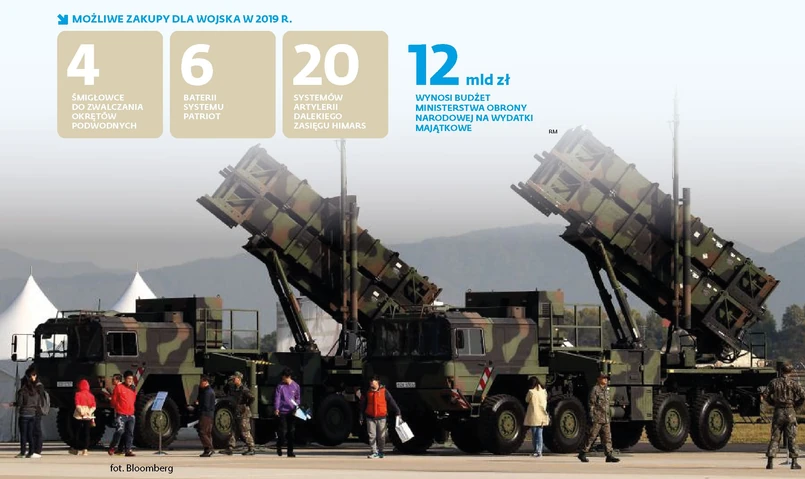 Z dużych umów na uzbrojenie w 2019 r. największe szanse na podpisanie ma kontrakt na zakup czterech śmigłowców AW101 do zwalczania okrętów podwodnych. Resort obrony rozmawia z koncernem Leonardo (właściciel PZL Świdnik), który jako jedyny złożył ofertę.