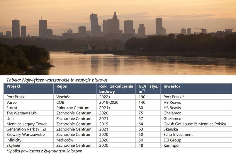Zdecydowanie największą realizowaną obecnie inwestycją w Warszawie i w całej Polsce jest Port Praski, który będzie kompleksem nie tylko biurowym (190 tys. m2), ale też mieszkalnym (160 tys. m2) i handlowo-usługowym (90 tys. m2). Projekt ten jest przykładem wyciągnięcia wniosków ze wszystkiego co poszło źle na Mordorze, co oznacza, że w tej nowej de facto dzielnicy powstaną równolegle biura, ale i mieszkania, co w zamyśle ma pomóc uniknąć komunikacyjnego horroru, który odgrywa się codziennie na Mokotowie. Podobnie dzieje się na Woli, gdzie w sąsiedztwie ronda Daszyńskiego powstają duże inwestycje mieszkaniowe (odległość 1-2 stacji metra, którego kolejny odcinek ma zostać oddany do użytkowania jesienią 2019 r.) oraz w okolicach Dworca Gdańskiego.