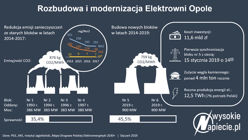 Warta 11,56 mld zł brutto budowa dwóch bloków energetycznych na węgiel kamienny w Elektrowni Opole powoli dobiega końca. We wtorek, 15 stycznia, blok nr 5 po raz pierwszy został zsynchronizowany z krajowym systemem elektroenergetycznym, a prąd z nowej instalacji popłynął do odbiorców. Za kilka miesięcy taka sama synchronizacja czeka blok nr 6. Cała budowa, będąca największą inwestycją infrastrukturalną III RP, powinna zakończyć się jesienią.