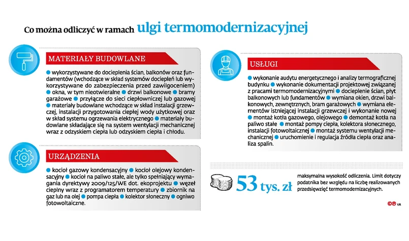 Odliczyć można wydatki np. na okna, drzwi balkonowe, bramy garażowe, ocieplenie ścian, zakup pieca (niezależnie od tego, czy jest gazowy, olejowy czy na paliwa stałe – ważne, żeby spełniał określone wymogi).