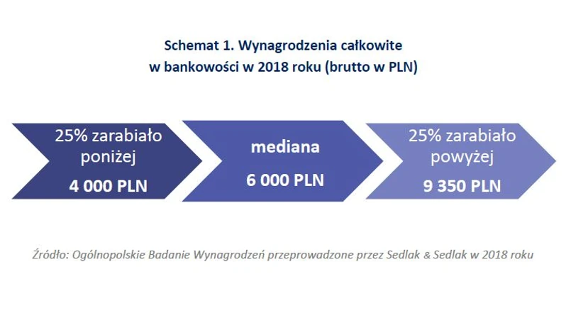 Najwyższe wynagrodzenia w bankowości otrzymywały osoby na stanowiskach menadżerskich. Połowa dyrektorów zarabiała w przedziale od 11 000 PLN do 24 875 PLN. Mediana ich zarobków była ponad czterokrotnie wyższa niż pracowników z najniższego szczebla zatrudnienia. Warto zwrócić uwagę, że wynagrodzenia kierowników w bankowości zależą od wielkości zespołu, którym dana osoba zarządza. Kierownik średniego zespołu zarabiał o 2 800 PLN więcej niż kierownik małego zespołu. Zróżnicowanie zarobków występuje również na poziomie specjalistów. Młodsi specjaliści otrzymywali 4 210 PLN, natomiast starsi specjaliści zarabiali prawie dwa razy więcej.