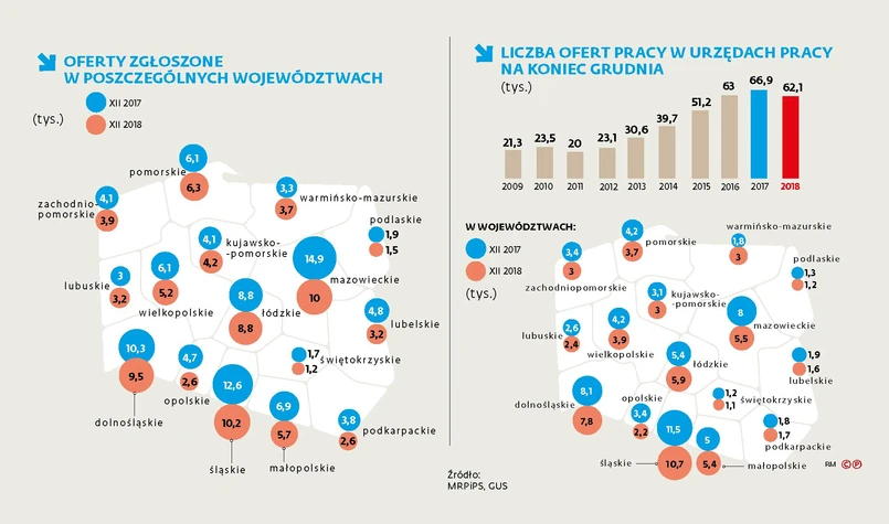 – W efekcie mniej jest wakatów związanych ze starymi stanowiskami, a co za tym idzie i mniej ofert pracy – twierdzi Fedorczuk. Dodaje, że niedobory kadrowe sprawiają również, że część firm ogranicza z tego powodu swój rozwój. Nie powstają więc w nich nowe etaty albo jest ich mniej, niż mogłoby być, co niekorzystnie wpływa na statystykę związaną z ofertami zatrudnienia.