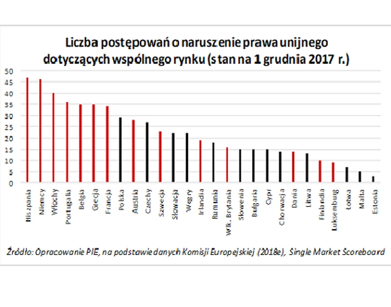 Obecnie Komisja Europejska prowadzi najwięcej postępowań o naruszenie prawa unijnego przeciwko państwom „starej” Unii, takim jak Hiszpania, Niemcy czy Włochy. Pod względem „systemowych” naruszeń zasad wspólnego rynku najwięcej spraw toczy się przeciwko Niemcom.