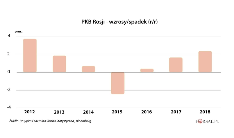 Nawet przy poziomie 2,3 proc. rosyjski wzrost jest wciąż znacznie poniżej swojej wagi w porównaniu do rynków wschodzących i swoich wyników sprzed recesji w 2015 r. Władimir Putin po zeszłorocznych wyborach obiecał,, że pod koniec jego sześcioletniej kadencji wzrost gospodarczy przekroczy poziom globalnej średniej, czyli na 3,7 proc.