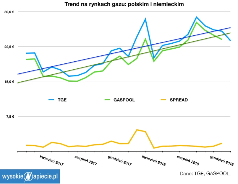 Trend wzrostowy na rynkach obserwujemy od schyłku lata 2017. O ile jesienią ceny gazu na rynkach zazwyczaj rosną ze względu na zwiększony popyt w chłodniejszej części roku, to w 2018 ceny nie zachowały się typowo i latem nie spadły. Trend wzrostowy był kontynuowany.