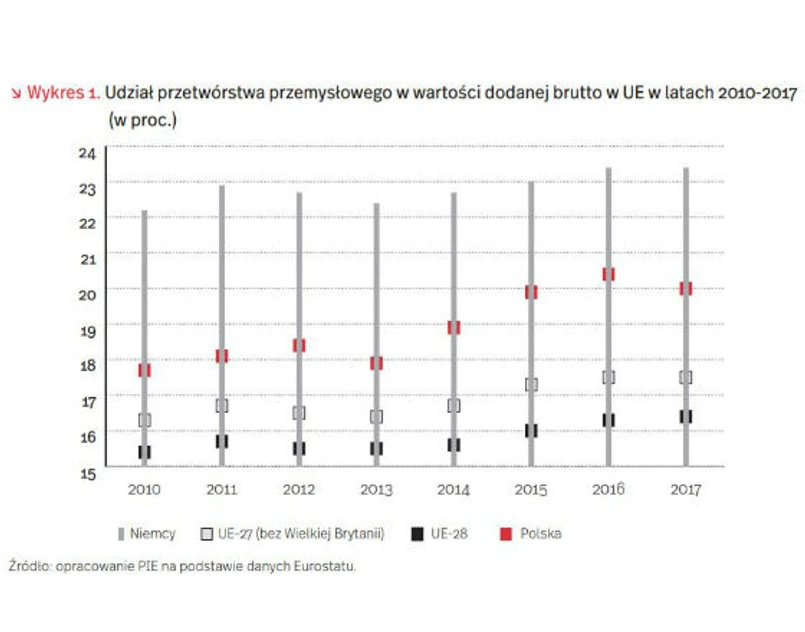 Polsce przyświeca chęć – i potrzeba – dogonienia krajów zachodnich UE pod względem udziału przetwórstwa przemysłowego w wartości dodanej brutto. Niemcy zaś szukają „tarczy obronnej” przed procesami globalizacyjnymi – jak protekcjonizm i interwencjonizm państwowy, zwłaszcza USA i Chin – których skutkiem będzie stopniowa utrata dominującej pozycji na światowych rynkach. „Niemcy coraz silniej odczuwają presję konkurencyjną ze strony wielkich firm amerykańskich i chińskich już nie tylko w dziedzinach nowoczesnych technologii, ale również w branżach tradycyjnych. Istotnym problemem jest również nasilające się zjawisko przejmowania krajowych firm przez chińskich inwestorów”, czytamy w Tygodniku Gospodarczym PIE.