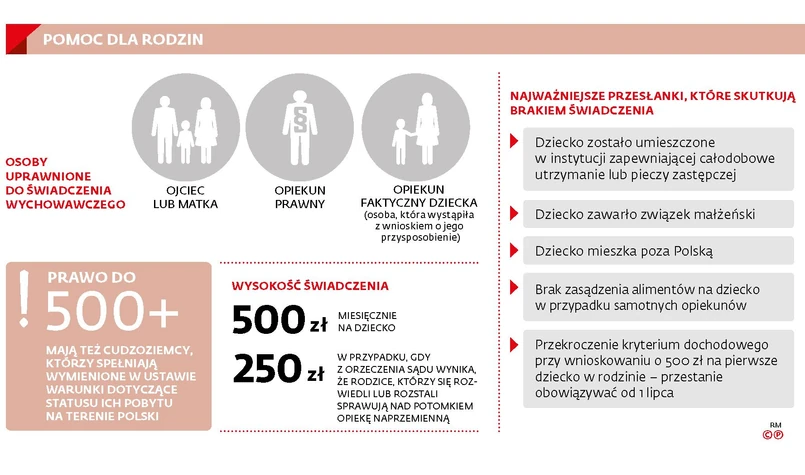 Zapowiedź prezesa PiS Jarosława Kaczyńskiego, że od lipca 500 zł będzie przysługiwać na każde dziecko, zelektryzowała nie tylko rodziców, ale też pracowników ośrodków pomocy społecznej, którzy zajmują się obsługą świadczeń. Jest to związane z tym, że nie wiadomo, jak w praktyce będzie wyglądała realizacja tej obietnicy, poza tym, że ma być utrzymany tryb składania wniosków (nie będzie przyznawania pieniędzy z urzędu). A jest to kluczowa kwestia, bo wszystko wskazuje na to, że w tym samym, krótkim czasie, poza dotychczasowymi wnioskami o cztery różne rodzaje pomocy finansowej na dzieci, będą jeszcze musiały rozpatrzeć dodatkową pulę formularzy o świadczenia wychowawcze na pierwszych potomków w rodzinie. Zgodnie z deklaracją Joanny Kopcińskiej, rzecznik rządu, bardziej szczegółowe informacje w tej sprawie (tzw. mapa drogowa) mają być podane 5 marca.