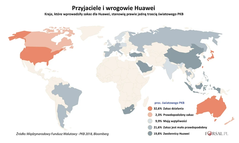 Działania wobec Huawei Państwa Proc. światowego PKB