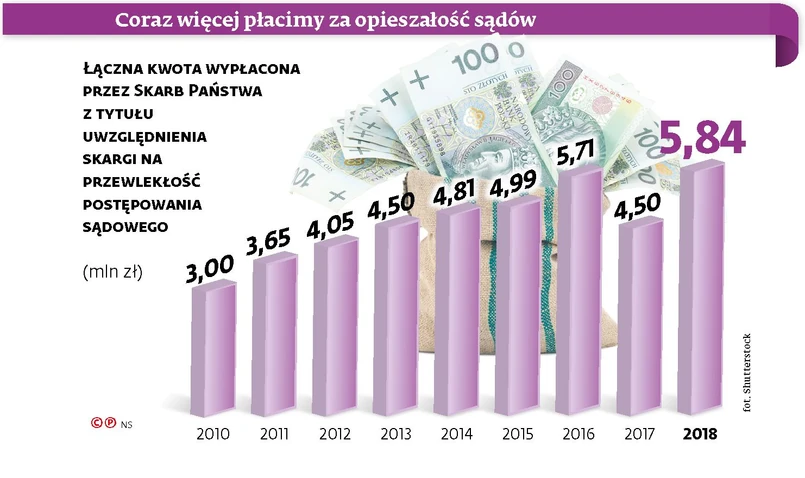 Ponad 5,8 mln zł musiał zapłacić w zeszłym roku Skarb Państwa za przedłużające się procesy. Jednocześnie sądy rozpoznały o niemal milion spraw mniej niż rok wcześniej