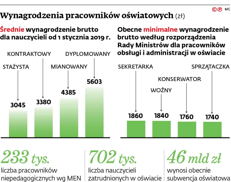 – O ile na wzrost pensji nauczycieli realny wpływ ma rząd, o tyle w przypadku pracowników samorządowych większe pole manewru mają lokalni włodarze. Jeśli zostałby spełniony pierwotny postulat 1000 zł podwyżki, to dla szkolnego woźnego pensja wzrosłaby niemal o 50 proc. – dodaje.