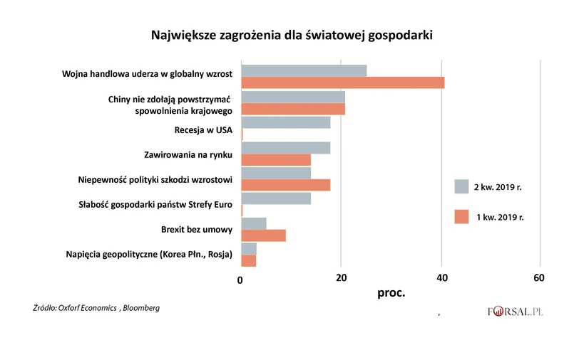 Spowolnienie gospodarcze w Chinach i recesja w USA zajęły drugie i trzecie miejsce w globalnym badaniu ryzyka Oxford Economics.