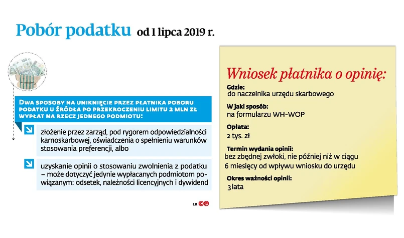 Za miesiąc wchodzą w życie odroczone do lipca nowe zasady poboru podatku u źródła (WHT). Zgodnie z nimi polskie firmy wypłacające zagranicznemu kontrahentowi m.in. odsetki, dywidendy czy należności licencyjne będą musiały potrącać daninę, jeżeli łączna wartość wypłat na rzecz tego samego podmiotu przekroczy w danym roku 2 mln zł. Tym samym wyłączona zostanie możliwość automatycznego stosowania zwolnień lub obniżonych stawek CIT.