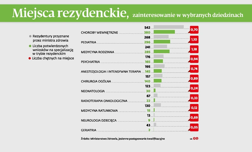 Szpital w Kluczborku na swojej stronie informuje, że od kilku miesięcy szuka pediatry lub neonatologa, jednak lekarze nie chcą podjąć pracy w oddziale szpitalnym, wolą przyjmować pacjentów w przychodniach. Widać to także po najbardziej obleganych specjalizacjach – najwięcej chętnych jest na te, po których pracuje się w poradniach.