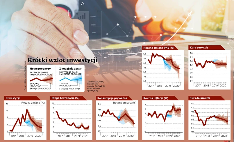 Przyszły rok powinien już przynieść wyhamowanie nadzwyczajnego tempa wzrostu PKB, czyli powrót do normalności. Średnia z ankiet to 3,7 proc. Podobne są oczekiwania rządu zawarte w założeniach do przyszłorocznego budżetu. Tyle że zdaniem analityków pod koniec 2020 r. gospodarka może rosnąć już w tempie nieprzekraczającym 3,5 proc. Efekt poszerzenia 500 plus będzie wygasał, choć zdaniem Piotra Soroczyńskiego z Krajowej Izby Gospodarczej powiększone transfery z budżetu do rodzin mogą spowodować, że w 2020 r. zdołamy utrzymać wzrost powyżej 4 proc.