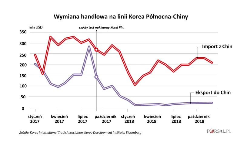 Chiny są kluczowym partnerem handlowym dla Kim Dzong Una. Państwo Środka odpowiada za około 90 proc. handlu zagranicznego Korei Północnej. Ale odkąd Rada Bezpieczeństwa ONZ w 2017 r. zaostrzyła sankcje handlowe przeciwko reżimowi Kim Dzong Un, eksport Korei Północnej do Chin drastycznie się skurczył, pozbawiając Pjongjang napływu twardej waluty, tak bardzo potrzebnej do wspierania działalności gospodarczej w tym kraju.