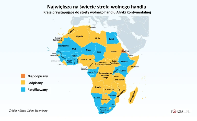 W poprzedni weekend przywódcy Nigerii i Beninu podpisali porozumienie dotyczące strefy wolnego handlu Afryki Kontynentalnej podczas specjalnego spotkania Unii Afrykańskiej w stolicy Nigru, Niamey. Tym samym praktycznie cały kontynent afrykański, z wyjątkiem Erytrei, objęty został strefą wolnego handlu.