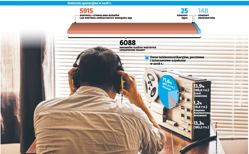 Mecenas Marcin Mrowicki, specjalista w zespole prawa karnego w Biurze Rzecznika Praw Obywatelskich, zwraca uwagę na proporcje w zestawieniu prokuratora generalnego: 6088 i tylko 25 decyzji odmownych wydanych przez sąd. O czym to świadczy? – Albo mamy świetnie przygotowane, merytoryczne służby, albo nieprzygotowane sądy, albo, co gorsza, ich kontrola jest pobieżna – mówi. Uważa, że ustawa inwigilacyjna w pewien sposób pozwoliła na manipulowanie materiałem przedstawianym sądom, które dostają nie wszystkie, a tylko te dane, które potwierdzają konieczność założenia np. podsłuchu.