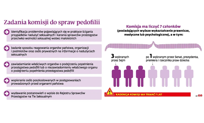 Takie mogą być konsekwencje uchwalenia ustawy powołującej komisję ds. pedofilii, która ma badać przypadki wszelkich „nadużyć seksualnych” przeciwko małoletnim poniżej lat 15. Pojęcie nie zostało zdefiniowane, ale wydaje się być szersze niż przestępstwa przeciwko wolności seksualnej i obyczajności z rozdziału XXV kodeksu karnego. Każdy będzie mógł zgłosić do komisji zawiadomienie o podejrzeniu popełnienia nadużycia seksualnego wobec dziecka albo fakt ukrywania takich czynów. Komisja zaś, jeśli uzna zawiadomienie za zasadne, będzie miała obowiązek poinformować organy ściągania. Kłopoty pojawiają się w przypadku ewentualnego umorzenia postępowania (czy to przez prokuratora, czy na etapie sądowym) z powodu przedawnienia karalności.