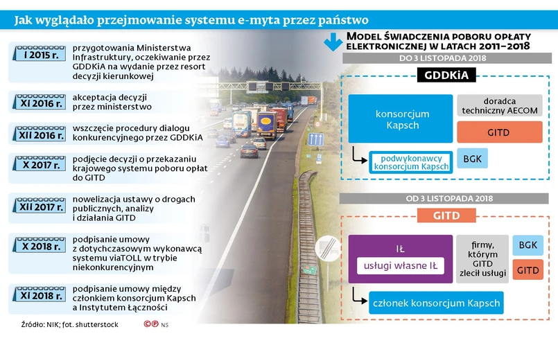 Od uruchomienia projektu w 2011 r. wiadomo było, że kontrakt z Generalną Dyrekcją Dróg Krajowych i Autostrad (GDDKiA) wygaśnie w listopadzie 2018 r. Był czas na przygotowanie się do zmian. Przez kilka lat rozważano różne koncepcje. Poprzedni rząd ugrzązł w tych rozważaniach, w związku z czym z wyzwaniem musiała się zmierzyć obecna ekipa. PiS nie podobało się, że strategicznie ważny system jest nadzorowany przez Austriaków. Podjęto więc przygotowania do zmiany systemu i jego operatora.