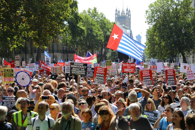 Największa demonstracja została zorganizowana w Londynie, gdzie demonstranci zablokowali rządową dzielnicę Whitehall, m.in. przed siedzibą premiera Borisa Johnsona na Downing Street 10, gdzie według agencji Reutera zgromadziło się ok. 2 tys. osób. W pewnym momencie protestujący przemieścili się także pod Pałac Buckingham. Wiele osób miało transparenty mówiące o obronie demokracji i skandowało hasła o "zatrzymaniu przewrotu", odnoszące się do wątpliwych ich zdaniem pod względem konstytucyjnym działań rządu.
