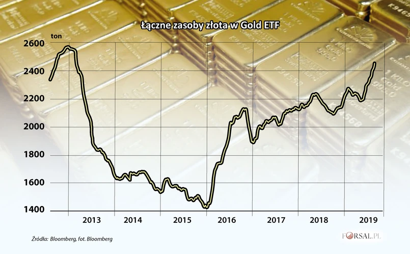 Rajd na złocie widoczny jest od początku roku, ponieważ w wyniku eskalacji wojny handlowej między USA a Chinami globalne prognozy gospodarcze pogorszyły się, a to zwiększa popularność tzw. bezpiecznych przystani. Nerwowe reakcje wśród inwestorów nasilają się tym bardziej, że złoto skupowane jest również przez banki centralne, co wzmocniło wzrosty cen - od początku roku cena kruszcu wzrosła o 19 proc.