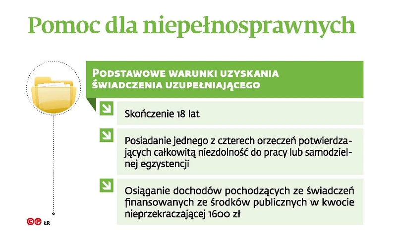 Próg dochodowy, od którego zależy uzyskanie świadczenia uzupełniającego, wynosi 1600 zł. Aby sprawdzić, czy nie jest przekroczony, ZUS weźmie pod uwagę wypłacane niepełnosprawnemu świadczenia finansowane ze środków publicznych, które nie mają charakteru jednorazowego – głównie emerytury lub renty, a także kwotę samego świadczenia uzupełniającego. Jednocześnie art. 2 ust. 2 ustawy z 31 lipca 2019 r. o świadczeniu uzupełniającym dla osób niezdolnych do samodzielnej egzystencji (Dz.U. poz. 1622) wymienia świadczenia, które znajdą się poza wspomnianym limitem. Są wśród nich m.in. zasiłki i dodatki pielęgnacyjne oraz renty rodzinne przyznane w okolicznościach, o których mowa w art. 68 ust. 1 pkt 3 ustawy z 17 grudnia 1998 r. o emeryturach i rentach z Funduszu Ubezpieczeń Społecznych (t.j. Dz.U. z 2018 r. poz. 1270 ze zm.). Chodzi tu o dzieci, które mają prawo do renty rodzinnej po śmierci rodzica. Mogą ją otrzymywać bez względu na wiek, o ile stały się niezdolne do samodzielnej egzystencji lub całkowicie niezdolne do pracy, zanim skończyły 16 lat lub do ukończenia nauki, ale nie dłużej niż do osiągnięcia 25. roku życia.