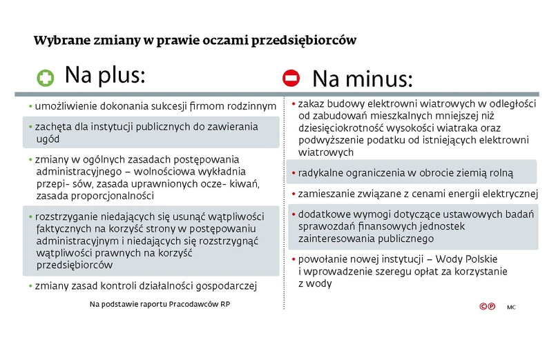 „Ich wprowadzenie miało korzystny wpływ na prowadzenie działalności gospodarczej, obniżenie kosztów i zniesienie niektórych obowiązków administracyjnych” – wskazuje organizacja. Zarazem jednak podkreśla, że to, co przedsiębiorcom władza do kieszeni włożyła, z drugiej wyjęła.