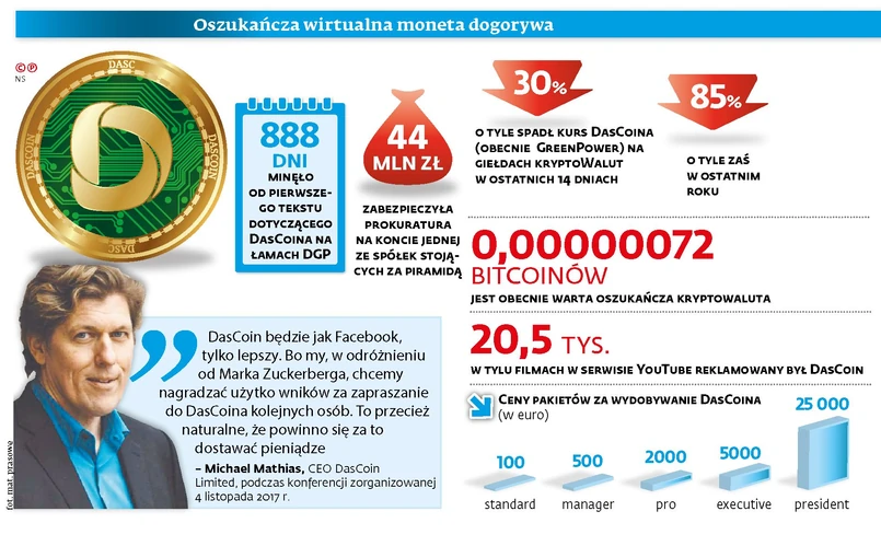 DasCoin miał być najbardziej wartościową kryptowalutą na świecie. Nowym, lepszym bitcoinem. Miał pozwolić ludziom zbić fortunę. Sprawa kończy się jednak tak, jak przewidzieliśmy na łamach DGP już w kwietniu 2017 r.