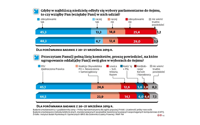 Ani sprawa wynajmowania przez nowego szefa NIK Mariana Banasia gangsterom lokalu, który zmienił się w hotel na godziny, ani skandaliczne wypowiedzi byłego prezydenta Lecha Wałęsy o zmarłym Kornelu Morawieckim nie wpływają radykalnie na zmianę nastrojów wyborczych. W zdecydowanej większości sondaży Prawo i Sprawiedliwość prowadzi, notując poparcie powyżej 40 proc. Druga jest Koalicja Obywatelska, która może liczyć na nieco poniżej 30 proc. głosów wyborców. Oczywiście to tylko sondaże. Trend jest jednak wyraźny od miesięcy. Przy jego analizie nie widać gwałtownych załamań ani wzrostów. Kampania wyborcza do parlamentu gwałtownego przełomu się nie doczekała.
