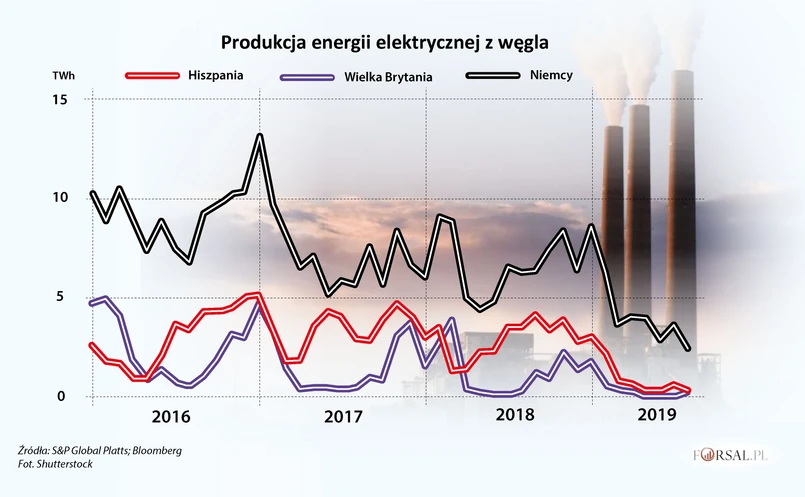 Najbardziej narażone na spadające zyski są zakłady energetyczne w Niemczech, Hiszpanii i Czechach. W tych krajach taniejący węgiel, przy jednocześnie rosnących kosztach pozwoleń na emisję CO2 sprawiają, że produkcja energii ze spalania węgla przestaje być opłacalna. Ceny węgla spadły do około 66 USD za tonę, podczas gdy w poprzednim roku tona czarnego surowca kosztowała ponad 100 USD. Natomiast od 2017 r. unijne zezwolenia na emisję wzrosły pięciokrotnie.