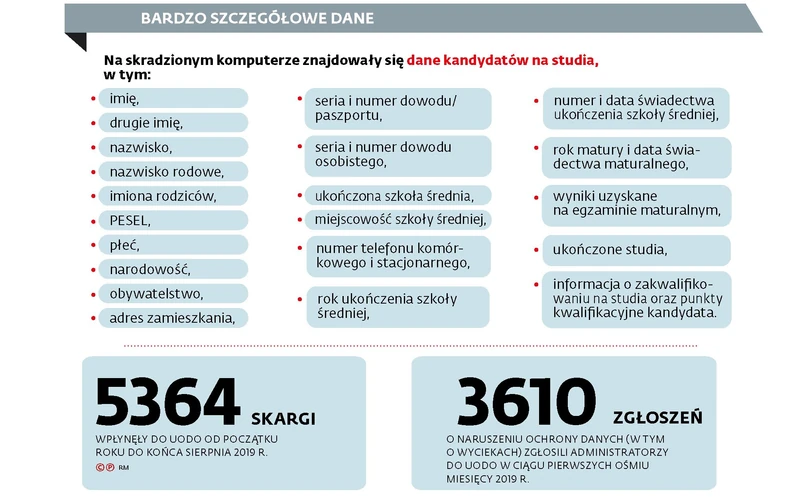 Podkreśla, że w jej ocenie uczelnia nienależycie informowała o potencjalnym wycieku. Komunikat o zagrożeniu umieściła na swej stronie internetowej dopiero 14 listopada, a laptop z danymi kandydatów został skradziony już 5 listopada.