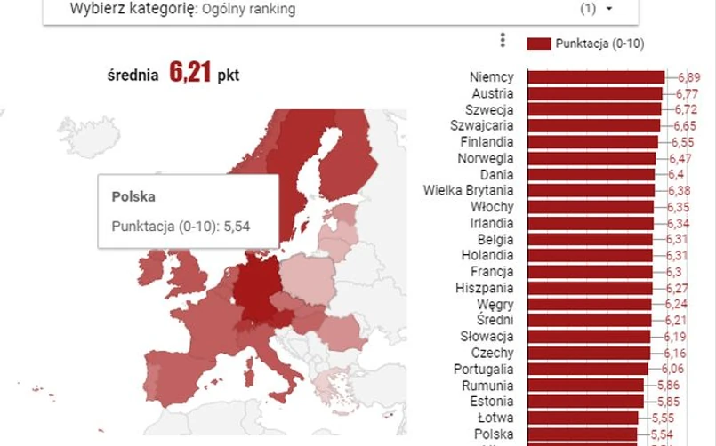 Polska najlepiej oceniona została pod względem swobody kredytowej. W tej kategorii polskie gospodarstwa domowe, z wynikiem powyżej średniej, uplasowały się na 10. pozycji, pomiędzy Niemcami i Austrią.