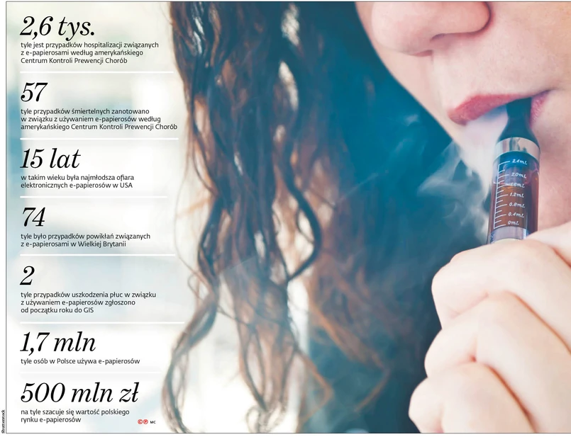Od początku tego roku szpitale muszą zgłaszać do powiatowych stacji sanitarnych każdą hospitalizację, która może mieć związek z używaniem elektronicznych papierosów. Raport ze zbiorczymi danymi ze wszystkich placówek w danym województwie co tydzień trafia do głównego inspektora sanitarnego. Jak wynika z informacji DGP, są już dwa przypadki nastolatek, które zgłosiły się do szpitala z problemami oddechowymi. Obie regularnie używały e-papierosów. Istnieje podejrzenie, że mogło to mieć wpływ na ich stan zdrowia.