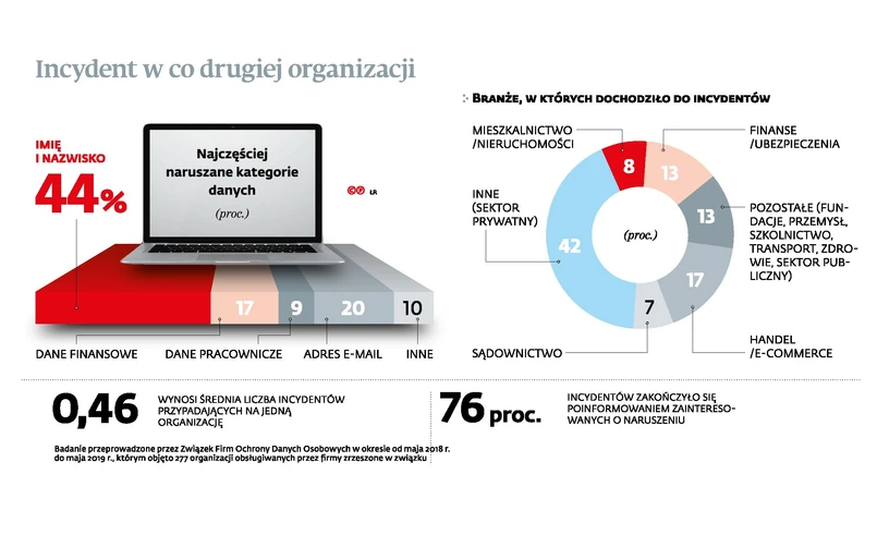 Z raportu wynika, że najgorzej chronione są imię i nazwisko (44 proc. naruszeń) oraz adres e-mail (20 proc.).