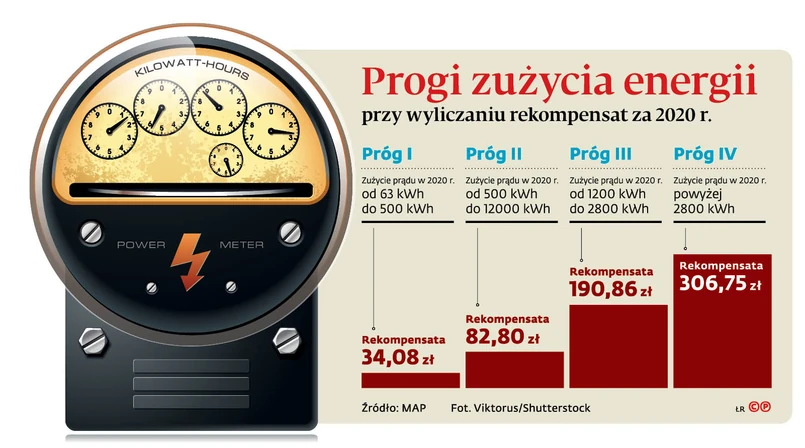 Kiedy wypłata? Wypłaty jako takiej nie będzie. Rekompensata zostanie odliczona od pierwszego rachunku za energię wystawionego przez spółkę obrotu po 15 marca 2021 r. Jeśli kwota na fakturze będzie niższa niż wyliczony zwrot, wówczas odliczenie nastąpi od kolejnych rachunków. – Chodzi o to, by nie krążyła gotówka czy przelewy i by dokonać całej operacji na linii klient –