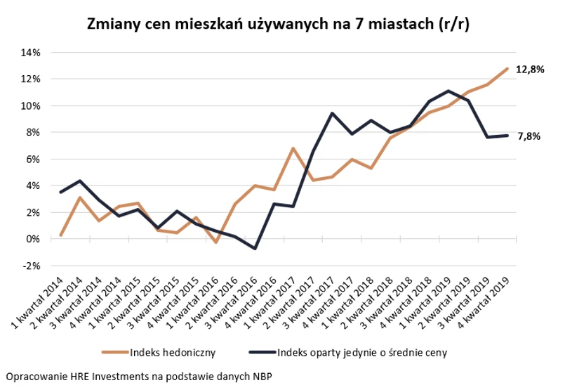 Odczyt ten jest pewnym zaskoczeniem, bo dotychczas dostępne dane o wnioskowanych przez Polaków kredytach mieszkaniowych, zdawały się raczej sugerować, że powinniśmy mieć do czynienia z hamowaniem wzrostów cen, a nie ich przyspieszeniem. Do tego de facto bowiem właśnie doszło. Dane za 3 kwartał 2019 roku sugerowały wzrost cen mieszkań używanych o 11,6 proc., a pod koniec 2018 roku lokale z drugiej ręki drożały z dynamiką nieprzekraczającą 10 proc. Oczywiście należy przy tym zaznaczyć, że najświeższe informacje o prawie 13-proc. wzroście cen mieszkań w ciągu roku są dopiero informacją wstępną i będzie ona rewidowana za kwartał.
