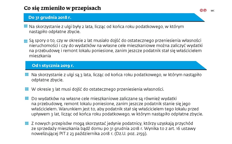 Sądy, które orzekały dotychczas zgodnie z tą wykładnią, uzasadniały, że ustawodawca wymaga jedynie, aby dochód ze sprzedaży nieruchomości został wydany w ciągu dwóch lat (obecnie trzech) na określone cele mieszkaniowe, wskazane w art. 21 ust. 25 ustawy o PIT. Nie wymaga natomiast, aby pieniądze zostały wydane w całości dopiero po definitywnym przeniesieniu własności na nabywcę. Podatnik może skorzystać ze zwolnienia nawet gdy podpisze umowę przedwstępną i przeznaczy zadatek lub zaliczkę na własne cele mieszkaniowe (czyli np. na zakup nowego lokalu).