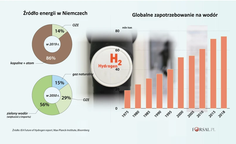 Rząd kanclerz Angeli Merkel zamierza podpisać strategię wodorową na następną dekadę i kolejne lata. Ten plan jest oparty na doświadczeniach zdobytych w ciągu dziesięcioleci importu ropy i gazu, w których cena i podaż są zniekształcane przez kartel. Ropa naftowa stanowi ponad jedną trzecią zużycia energii pierwotnej w Niemczech. A gaz, którego udział w wytwarzaniu energii rośnie, pochodzi głównie z Rosji.