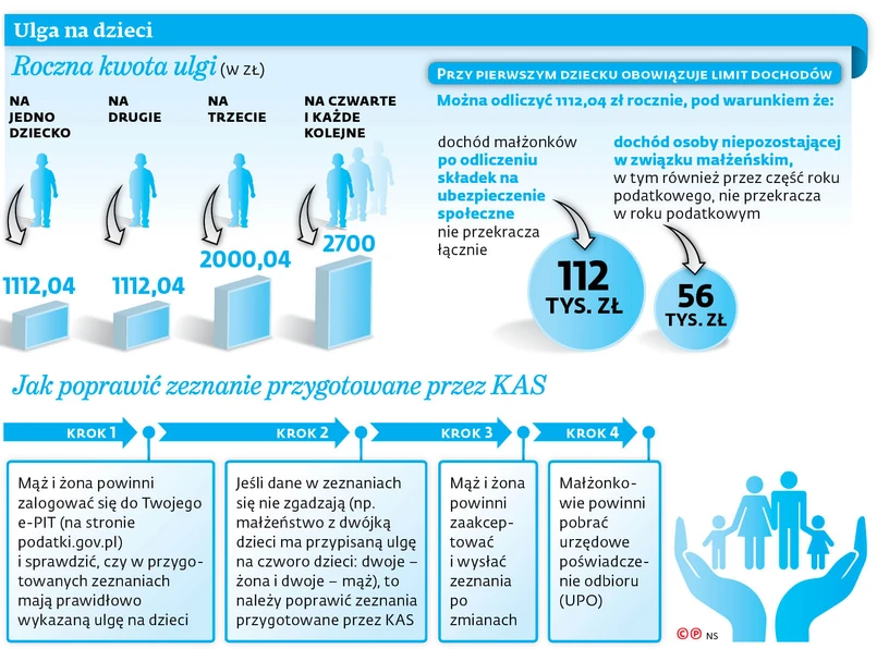 „Przy czym w zeznaniu podatkowym należy wykazać dane wszystkich dzieci, na które przysługuje ulga na dzieci – dla każdego z podatników odrębnie” – zaznacza Ministerstwo Finansów.