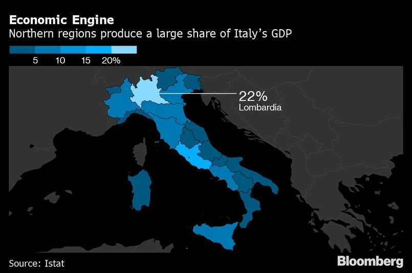 Bloomberg Economics przewiduje, że włoska gospodarka skurczy się w pierwszym kwartale roku o ponad 6 proc. Morgan Stanley z kolei prognozuje 19-proc. spadek w tym okresie w ujęciu rok do roku, zaś spadek w ciągu kolejnych trzech miesięcy ma wynieść 33 proc.