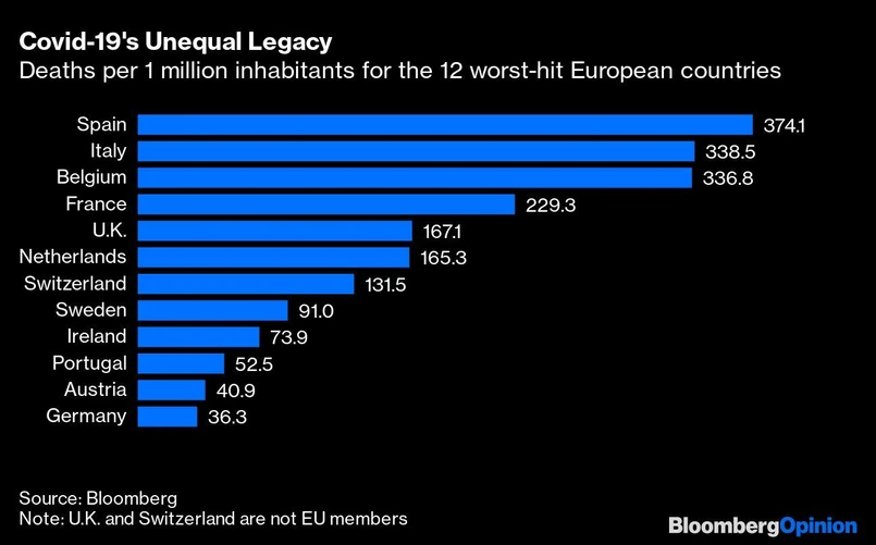 Jednak nierównomierna liczba ofiar śmiertelnych w Europie sugeruje, że wielka Unia nie jest dobrze przygotowana na epidemie. Wygląda na to, że kraje, które zareagowały wcześniej w związku z wybuchem epidemii Covid-19 - Austria, Dania i Grecja - radzą sobie lepiej niż te, które zareagowały stosunkowo późno - Włochy czy Hiszpania. Oszczędny, ale zdecentralizowany kraj, taki jak Niemcy, który dysponuje zarówno rozwiniętym systemem intensywnej opieki, jak i specjalistycznymi firmami z branży medycznej, wydaje się radzić sobie lepiej niż dobrze finansowany, ale scentralizowany system Francji, który, aby złagodzić obciążenie, przewozi pacjentów szybkim pociągiem do mniej dotkniętych epidemią regionów. Niektóre kraje mają lepszy dostęp do masek i testów niż inne.