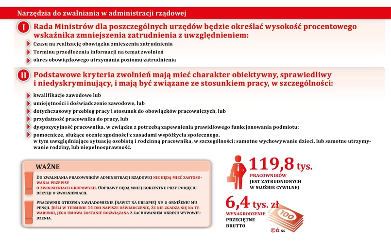 – Rząd musi jednak kierować się opiniami dyrektorów generalnych i brać pod uwagę zadania nałożone na poszczególne urzędy, aby nie doprowadzić do paraliżu państwa – mówi prof. Józefa Hrynkiewicz, działaczka PiS i była dyrektor KSAP. – Musi jednak też być powołany zespół w kancelarii premiera, który zaproponuje skalę redukcji zatrudnienia, bo osoby zarządzające państwowymi jednostkami będą zapewne próbowały wykazywać, że pracowników brakuje i nie ma kogo zwalniać. Wtedy jednym rozwiązaniem będzie ograniczanie wynagrodzeń – dodaje.