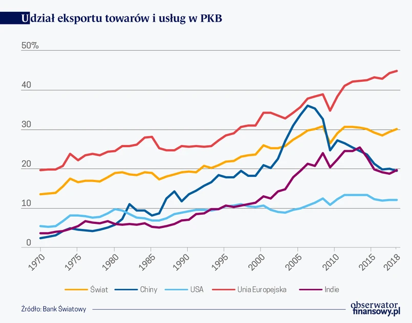 Te sygnały zamykania się gospodarek i podejmowania nieprzyjaznych kroków wobec Chin nie muszą oznaczać całkowitego odejścia od globalizacji. Udział handlu w globalnym PKB osiągnął najwyższy poziom w 2008 r. i od tego czasu wykazuje lekką tendencję spadkową.