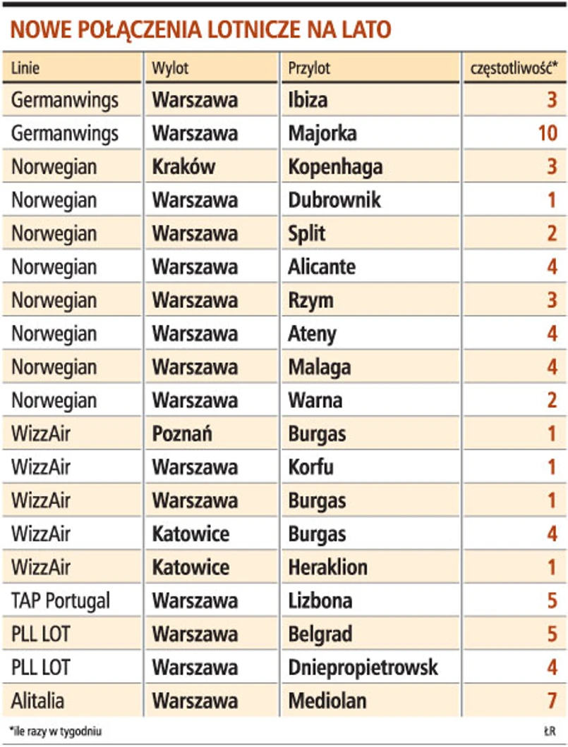 W tym roku bez problemu będzie można dostać się także do Lizbony (po wycofaniu się z lotów rejsowych Centralwings było to możliwe tylko z przesiadkami). Linie TAP Portugal od 10 czerwca uruchamiają z warszawskiego lotniska bezpośrednie loty do stolicy Portugalii. Na nowości postawił nawet PLL LOT. Od maja polskie linie polecą do Dniepropietrowska i Belgradu.