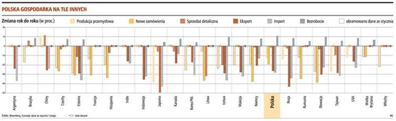 Z danych, jakie zebraliśmy jasno wynika, że załamał się handel międzynarodowy. Dwucyfrowe spadki w eksporcie i imporcie odnotowują zarówno najbogatsze kraje świata, takie jak USA, Japonia czy Niemcy, jak również Rosja oraz azjatyccy eksporterzy tacy jak Chiny, Indie, Indonezja, Korea Południowa, Malezja i Tajwan. 28 proc. spadek importu i ponad 26 proc. spadek eksportu z Polski nie jest ewenementem ani na tle świata, ani na tle regionu.