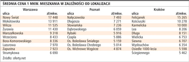 Według Marcina Drohomireckiego, różnice w cenie metra kwadratowego mieszkania zlokalizowanego przy prestiżowej ulicy i mieszkania na peryferyjnym osiedlu mogą sięgać nawet kilkuset procent. W przypadku mieszkań o zbliżonym standardzie (w blokach wzniesionych w okresie PRL-u) rozpiętość cenowa wynikająca z różnic w lokalizacji może sięgać nawet 60 proc. Jednak czasami osoby sprzedające mieszkania zlokalizowane w najbardziej luksusowych miejscach wystawiają ceny, które niewiele mają wspólnego ze stanem technicznym lokalu czy całego budynku. Z tego też powodu osoby kupujące mieszkania, jak i je sprzedające, muszą wykazać się dużą rozwagą. W Polsce nie można bowiem oczekiwać, że ceny nieruchomości spadną podobnie jak to miało miejsce w Stanach Zjednoczonych.